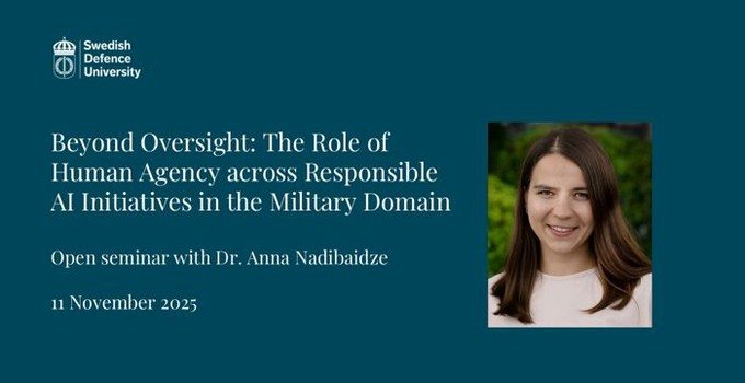 11 November 2025 Anna Nadibaidze will present HuMach research during an open research seminar at the Department of International and Operational Law, Swedish Defence University, Stockholm. In this presentation, Anna Nadibaidze examines existing understandings of human oversight across responsible AI frameworks, based on a mapping and content analysis of global and regional initiatives applying to […]